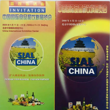 2000年,法国高美艾博展览集团将SIAL引入中国,并作为创始方之一举办中国国际食品和饮料展览会(SIAL China),首届展会在北京中国国际展览中心8号馆举办,迎来了来自29个国家和地区的323家展商,参展观众13,420人。次年,SIAL China移师上海光大会展中心。