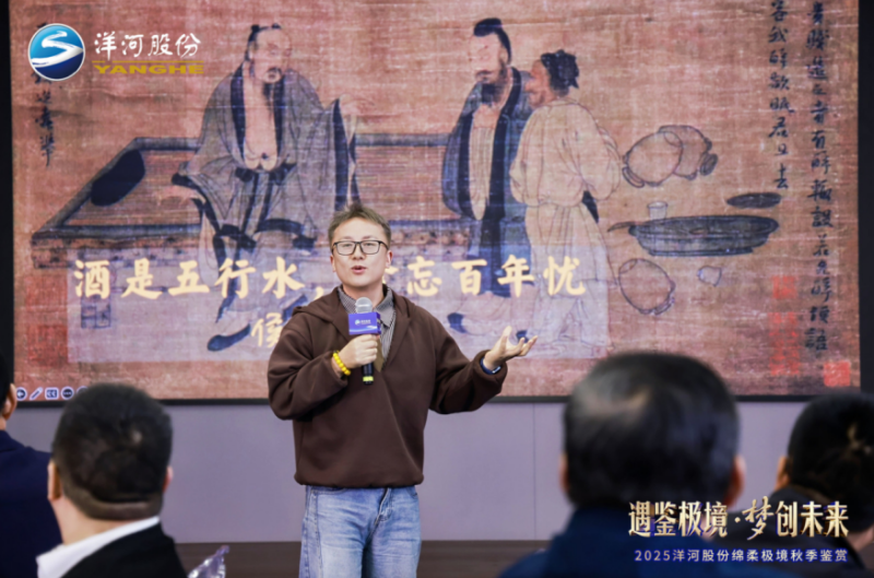 一场融合汉、唐、明、清四代酒礼的礼仪表演,生动复现中国酒礼流变;洋河特色酒具“天地杯”“成事盏”“立心壶”与圆梦酒礼也通过酒道表演一一呈现。著名文化学者、艺术评论家纪太年在主题分享《酒礼演变、品牌国宴故事回顾》中,深入解读了中国酒礼文化的传承与创新。